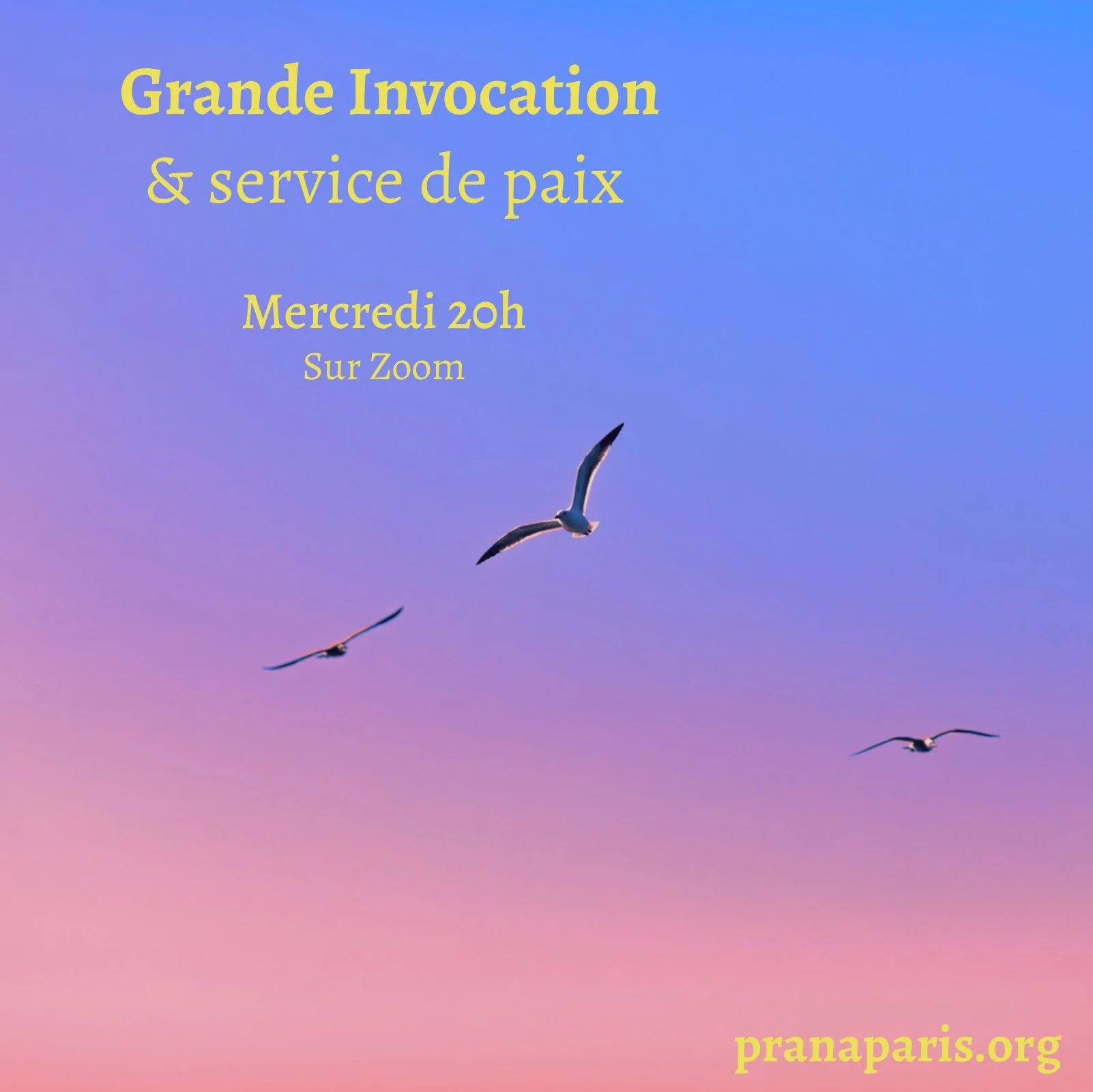 Retour à tous les événements Grande Invocation mercredi 8 avril 2026 20:00 21:00 Zoom (carte) Google Agenda ICS ZOOM LINK